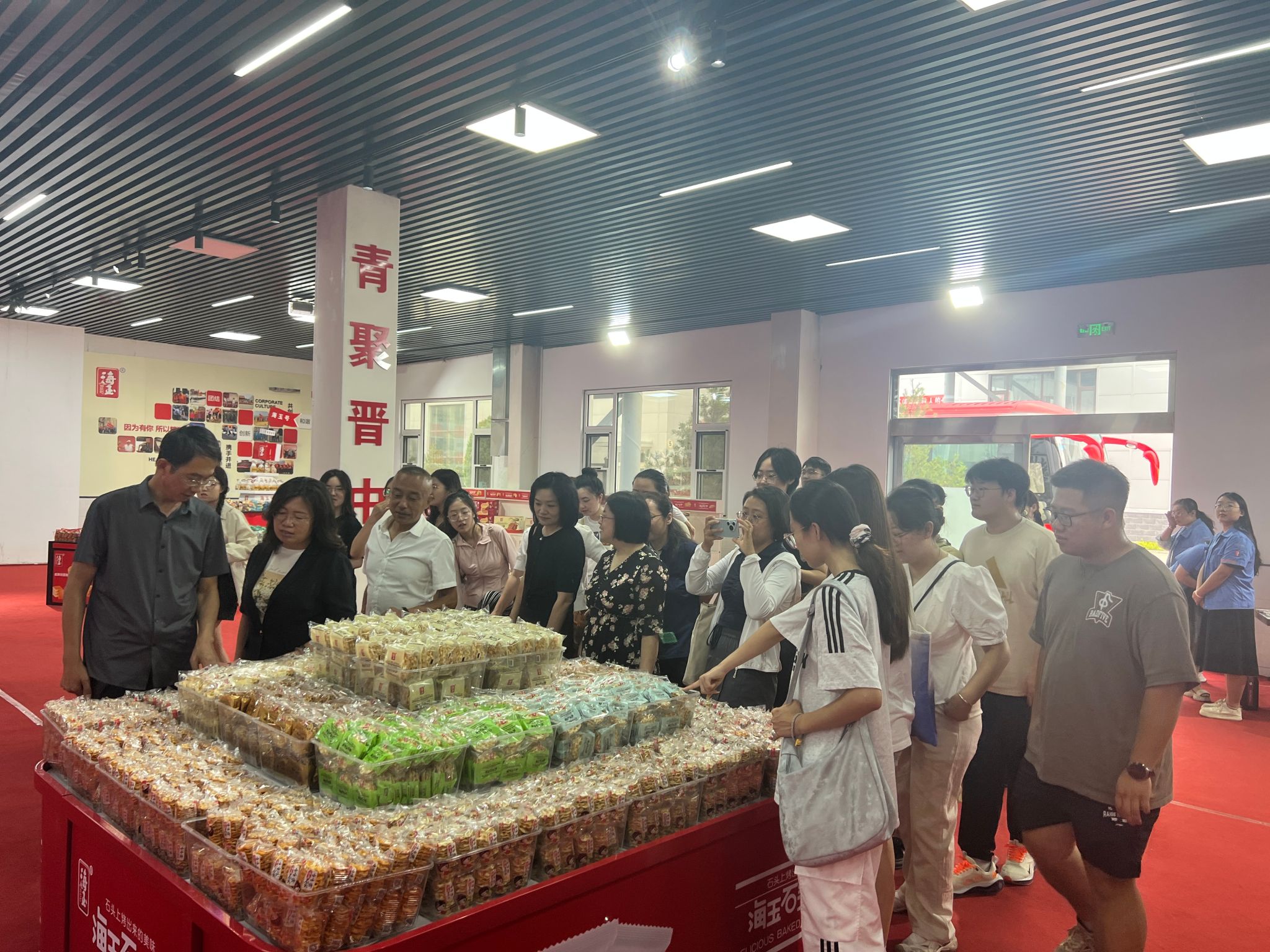 活动开始,在王晓的引导和介绍下,实地参观了海玉园公司的标准化生产车间、原料库房、成品库房以及成品展示厅,让师生们熟悉了产品生产全流程。
