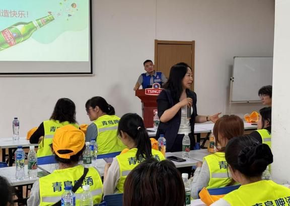 随后进入互动交流环节。刘强围绕企业管理模式与经营过程进行详细讲解,进一步加深了同学们对青岛啤酒公司的发展历程和行业定位的认识。王瑞娜老师结合参观所见就企业生产流程以及企业数字化转型等方面提出问题并启发思考学生思考。