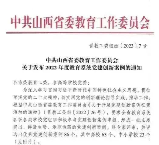 近日,中共山西省委教育工作委员会公布了2022年度全省教育系统党建创新案例评选结果。色情短视频