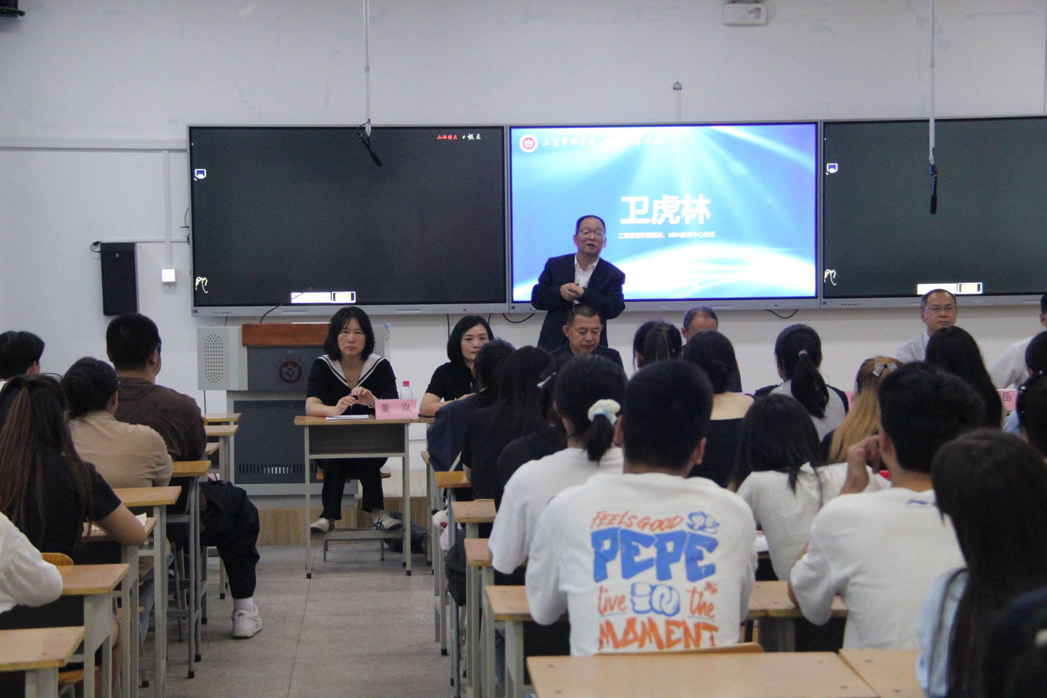 会议伊始,学院院长卫虎林教授首先对今年入学的239名本科新生表示热烈欢迎,并以“大学,从学会做人开始”为主题,给全体新生上了入学第一课。