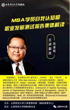 组织举办了线上“MBA学员自我认知和职业发展测试报告集体解读”专题讲座,这是山财MBA研习社举办的第六次讲座。MBA教育中心全体工作人员、2021级MBA全体同学和第十五届MBA联合会代表等参加了会议。讲座由第十五届MBA联合会宣传部部长、2020级MBA学生张勃主持。