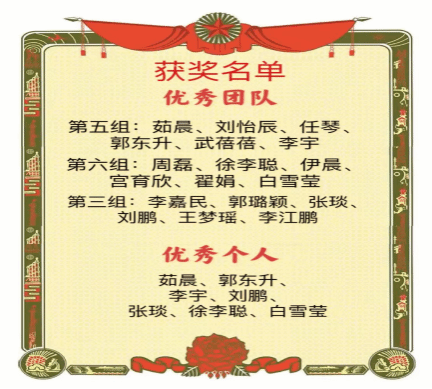 “首先非常感谢老师和同学们的青睐,作为优秀团队的带头人我深感荣幸。在本次案例大赛的筹备和展示过程中,我深刻体会到了老师给我们分享的“明主不用其智,而任圣人之智;不用其力,而任众人之力。”的真正含义。靠单打独斗难成气候,只有团队中的每个人发挥所长,群策群力,才能更好的达成目标。下一步,我们将理论结合实践,进一步完善案例内容,给本次案例分享画上一个圆满的句号。最后感谢组员们带我躺赢,再次感谢老师和同学们对我们小组的认可。”——三组组长 李嘉民