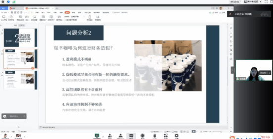 经过激烈角逐,最终3支优秀团队、7名优秀个人脱颖而出。比赛最后,曹老师对本班六支参赛队伍进行了逐一点评,充分肯定了大家主动付出、团结协作的劳动成果。从PPT制作到个人演讲技巧,再到理论运用。从企业案例视角的选择、整体与局部的关系、案例重点问题的选择与理论分析、得出的启示等多角度,多层次存在的问题进行了细致透彻的分析,给出了专业有效的建议。同时,老师也勉励同学们在今后的学习与生活中,继续发扬“团结、友谊、进步”的精神,彰显财大“修德立信、博学求真”的校训,努力成为堪当民族复兴重任的时代新人。