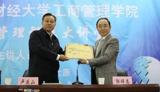 “管理智慧大讲堂”。讲座开始之前,卢庆山副校长受刘维奇校长委托,代表学校为郭祥恩校友颁发了兼职教授聘书,岗位设在色情短视频