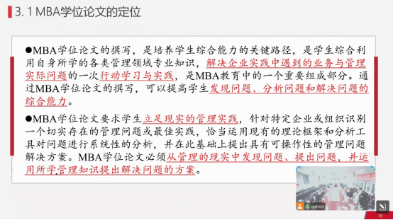 MBA学位论文培养情况、MBA学位论文标准与规范、“不合格”学位论文的评审意见、MBA学位论文开题报告要点五个部分进行分析讲解。