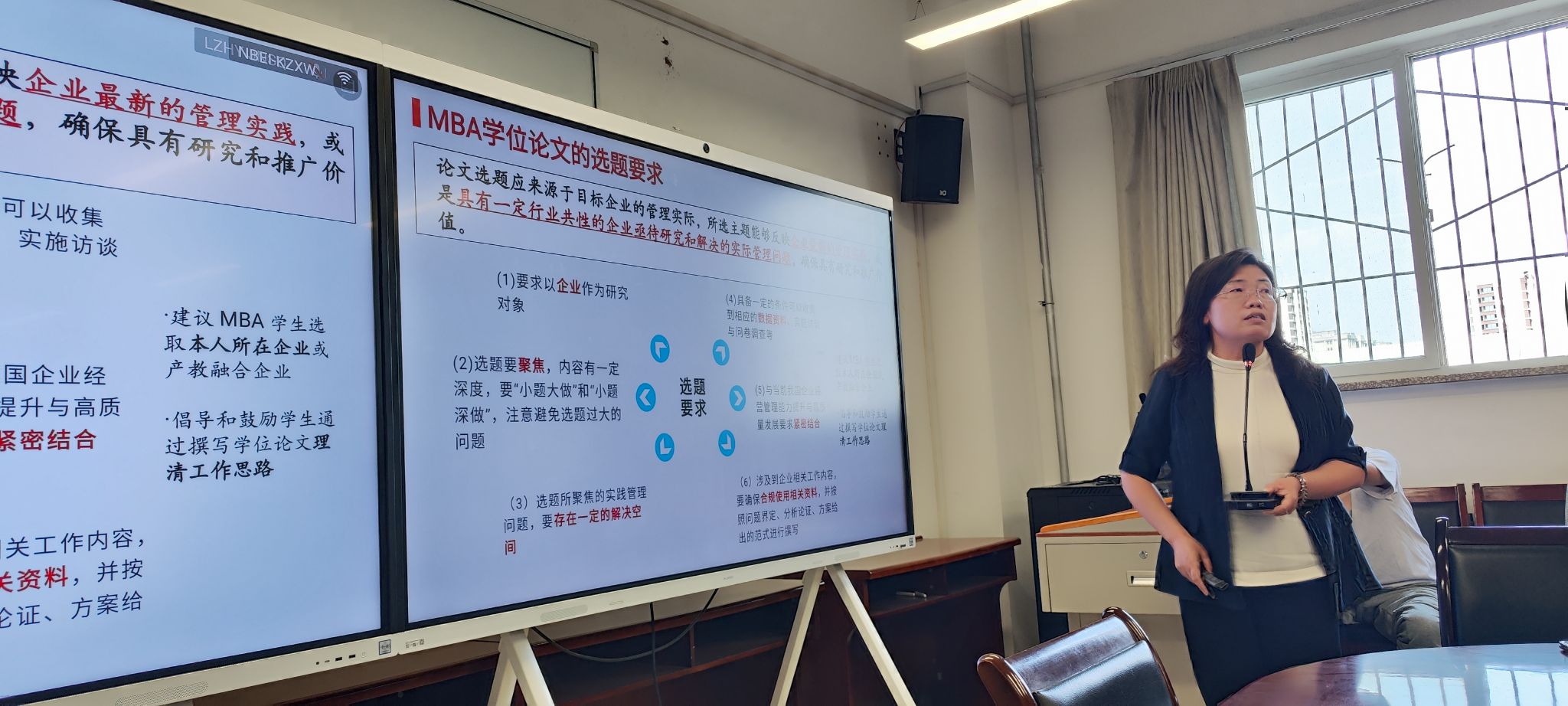 学院副院长、MBA教育中心执行主任薛继东做了MBA学位论文质量提升专题报告。报告从集体学习《中华人民共和国学位法》《教育部关于深入推进学术学位与专业学位研究生教育分类发展的意见》等与MBA人才培养相关的重要文件入手,对MBA学位论文标准与规范进行了详细解读,并对我校MBA学位论文培养情况、“不合格”学位论文的评审意见、MBA学位论文开题报告要点等做了深入讲解。