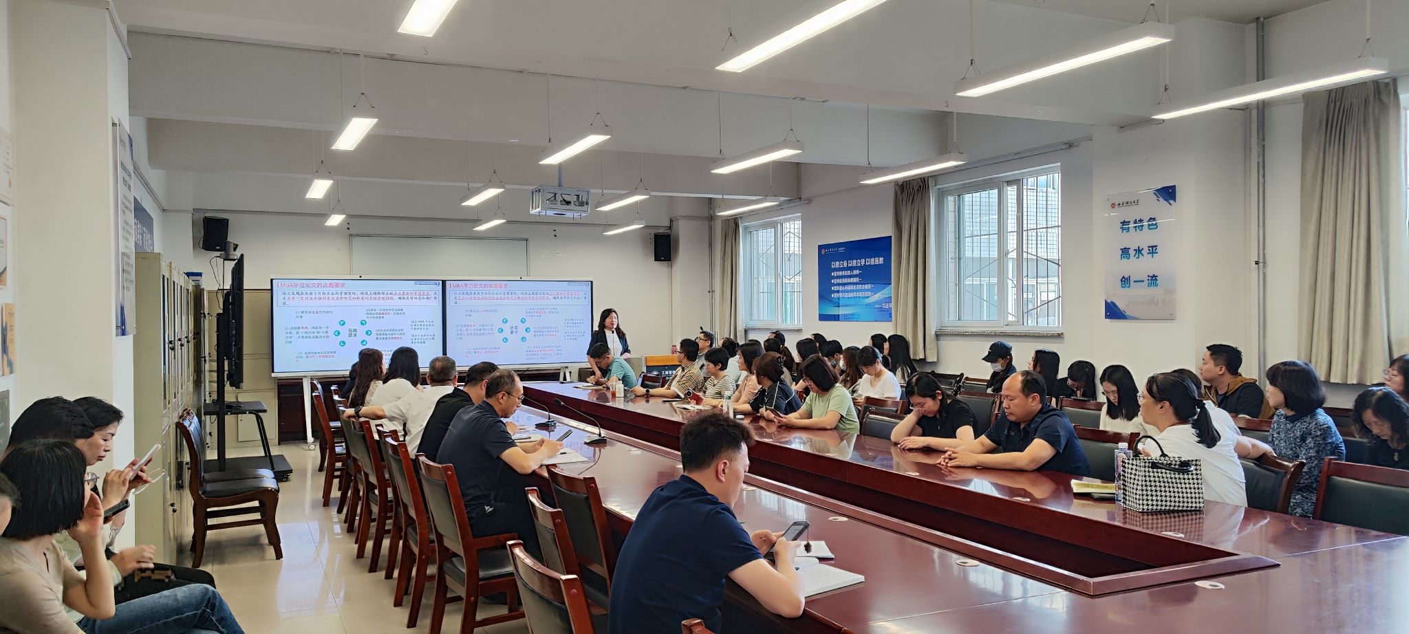举行MBA学位论文质量提升专题培训。学院领导、全体教职工参加会议。会议由学院院长、MBA教育中心主任卫虎林主持。