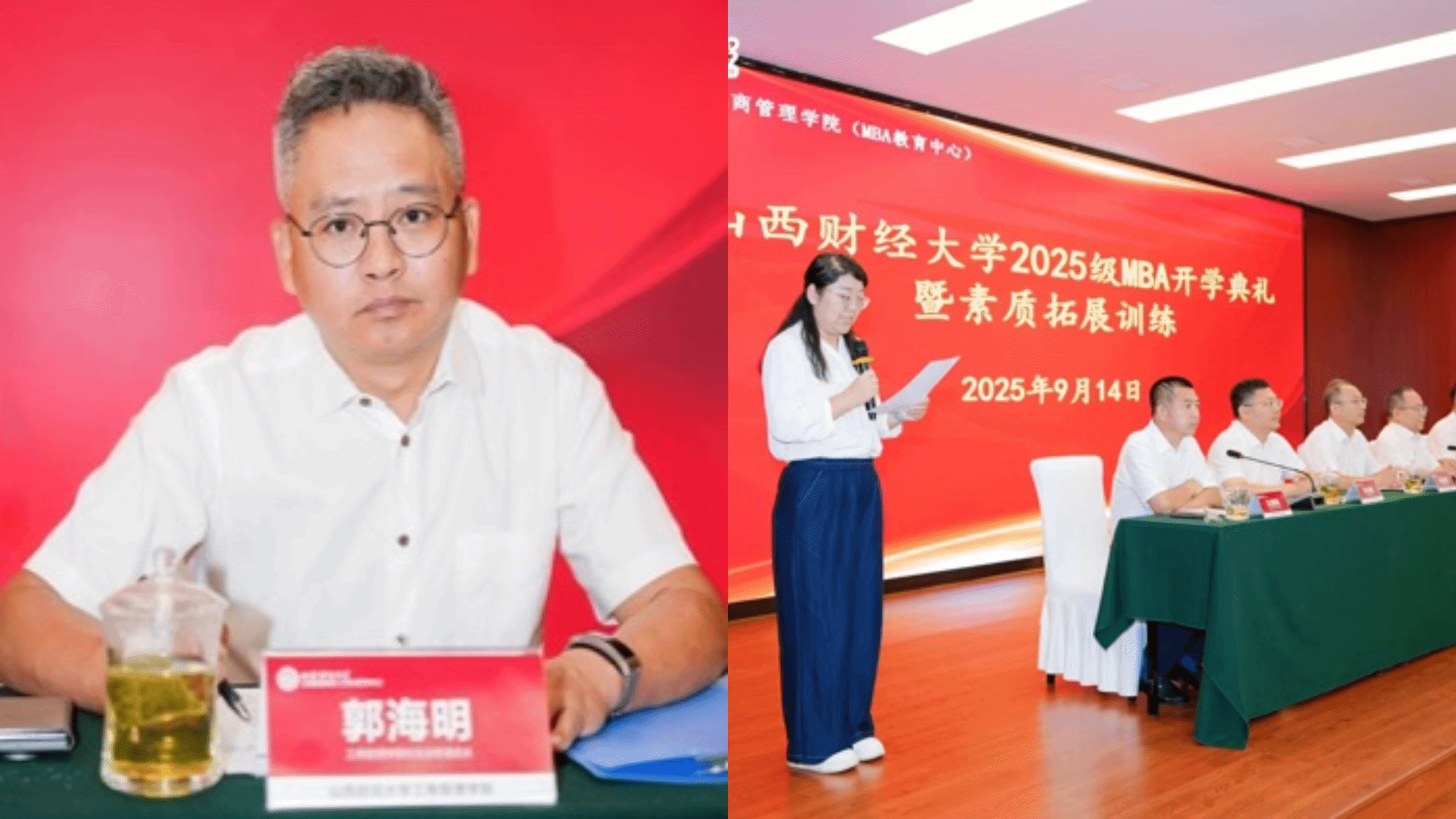 2025级MBA新生代表、山西省教育厅招生考试中心关丽祥同学发言,她呼吁新生守好学术初心、保持空杯心态、做好知行合一,传承晋商精神,反哺山西经济转型。