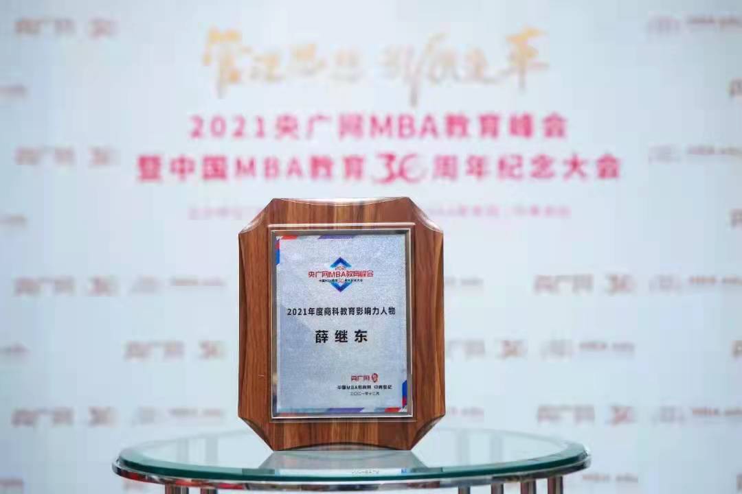 副院长薛继东荣获2021年度商科教育影响力人物奖。