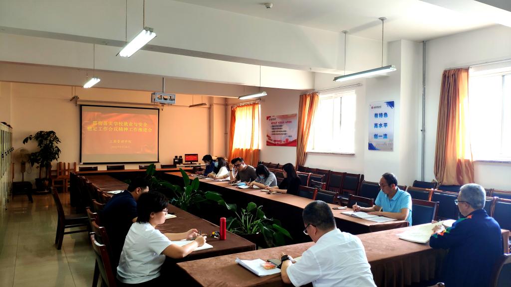 会议传达了我校就业和安全稳定工作会议精神。听取了毕业班辅导员对今年各类毕业生就业工作进展情况的汇报。对下一步如何推进毕业生就业工作以及做好高考期间学生安全等,进行了全面安排部署。