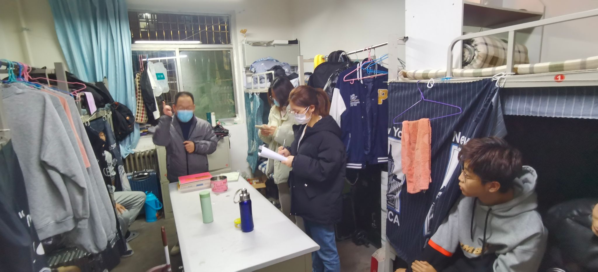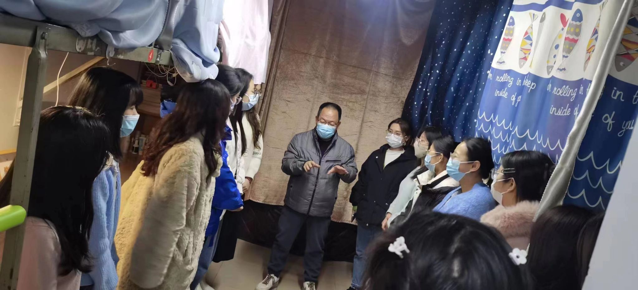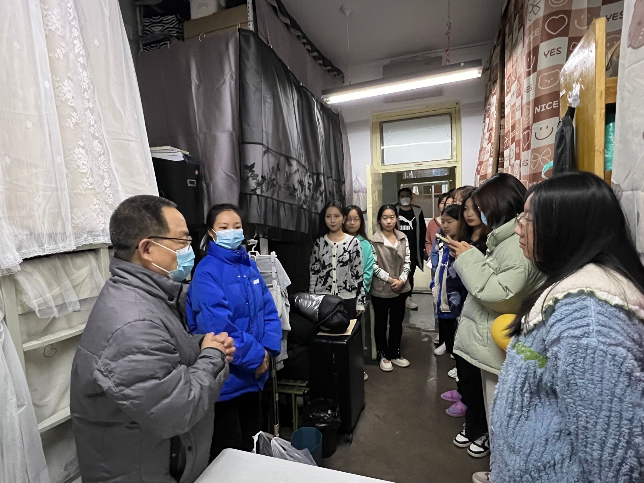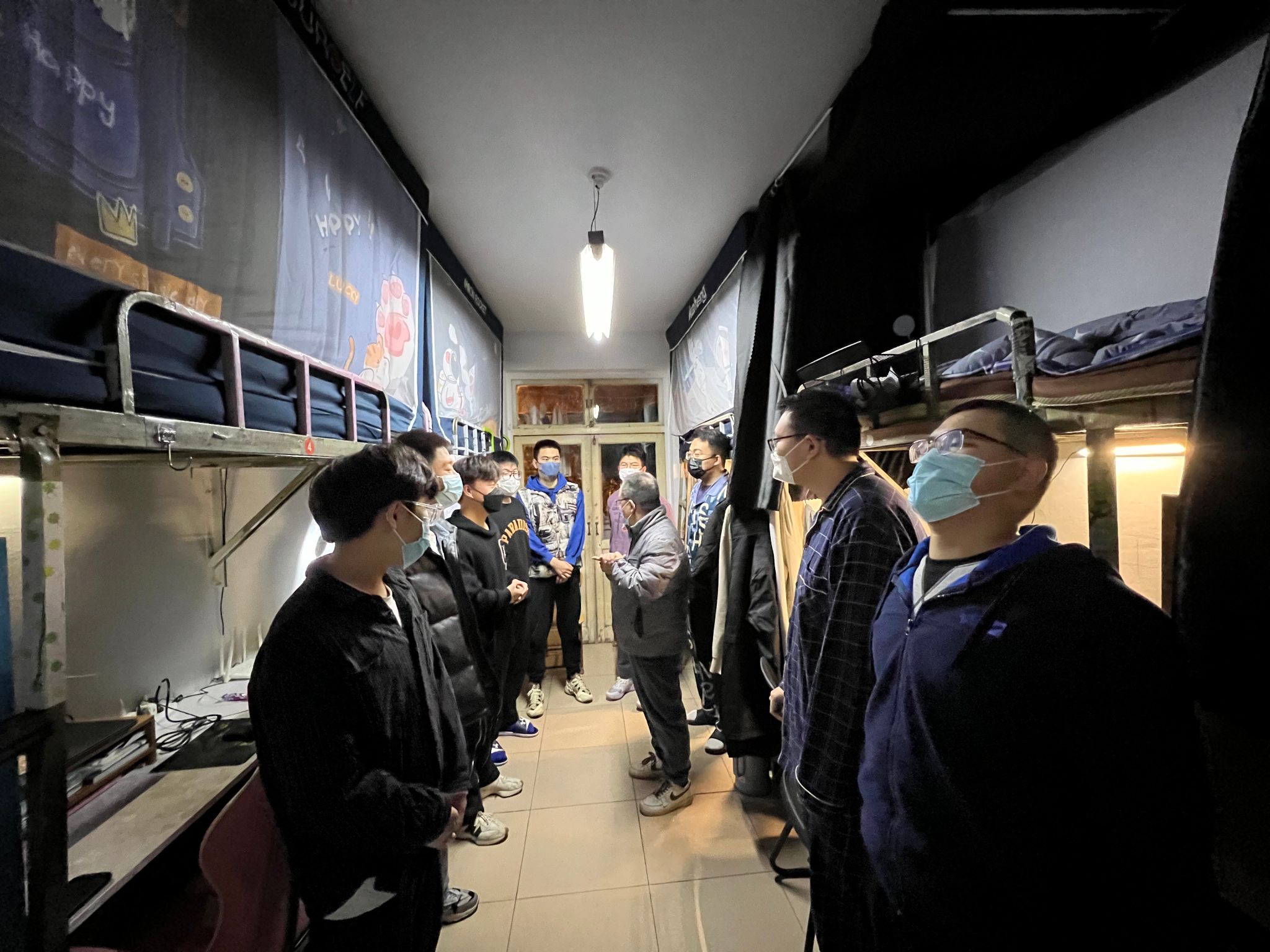 卫虎林院长带领住校辅导员与学生代表等,深入本科生、研究生学生宿舍,走访看望在校学生。