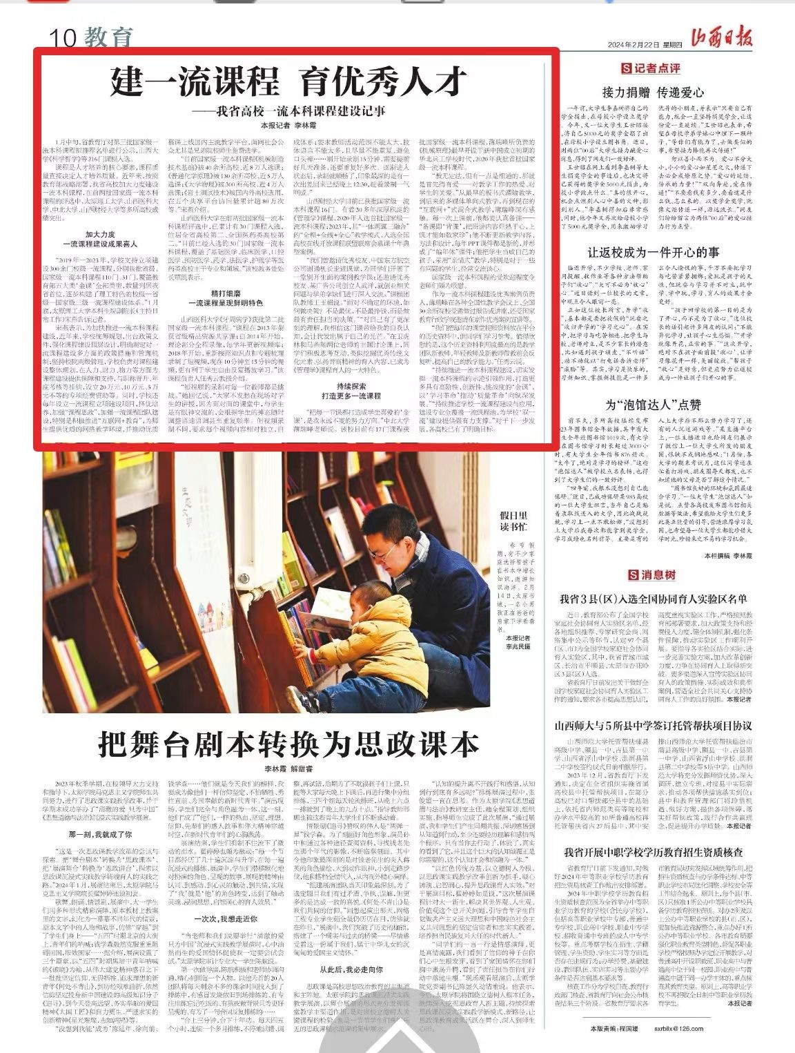 2.《山西日报》2月22日第10版报道我校国家级一流本科课程《管理学》建设情况