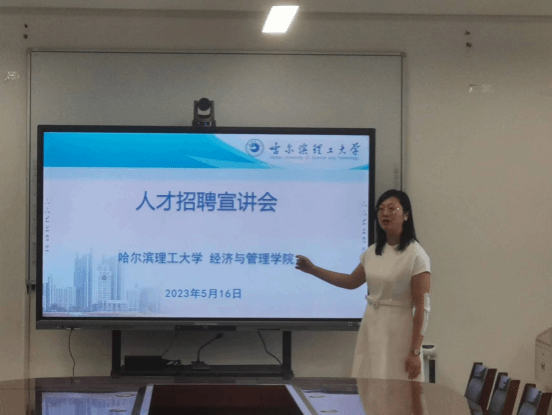 会议第二阶段,哈尔滨理工大学工商管理学科助理李庆雪进行了人才招聘宣讲。就博士生就业问题进行了现场答疑解惑。