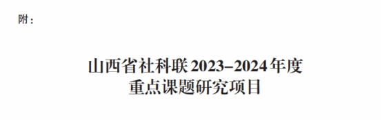 8月18日, 山西省社会科学界联合会下发了《山西省社会科学界联合会2023至2024年度重点课题立项通知》(晋社联字〔2023〕26号),色情短视频 张莉艳和郭晶两位老师获该课题立项。