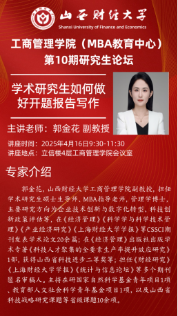 在本次论坛中,郭金花副教授围绕学术研究生开题报告写作的关键要点展开分享。郭老师首先着眼于论文选题这一关键环节,指出选题可从三个方面入手,即从学习兴趣中明确研究方向、从学术会议中捕捉研究视角、从课题项目中挖掘研究思路。其次,她对开题报告的研究背景、研究内容、研究方法、技术路线等各板块进行系统梳理,阐述各部分在整个研究体系中的作用与关联。在撰写规范方面,郭老师细致剖析开题报告各部分写作要点,从结构搭建到内容表述,均给出专业指导,并点明写作过程中的常见问题与规避方法。最后,郭老师着重强调科研道德在学术论文中的关键地位,告诫同学们严守学术诚信底线,坚决杜绝任何学术不端行为,共同维护学术研究的严谨性与公正性。