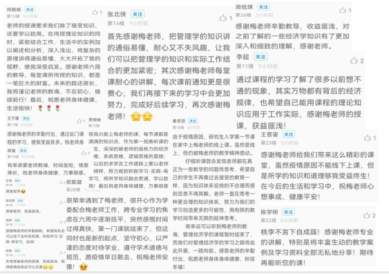 11月5日,院2022级MBA3班结束了《管理经济学》课程,最后一节课上梅莉老师发表了结课寄语,同学们纷纷表达了对梅老师的感激之情以及学习MBA课程的感悟。
