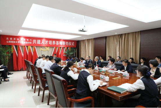 党委书记郜军的带领下,学院党委副书记周志刚、副院长薛继东及师生代表一行十余人走进吕梁农村商业银行进行调研,就加强院企合作举行研讨会并签订战略合作协议。