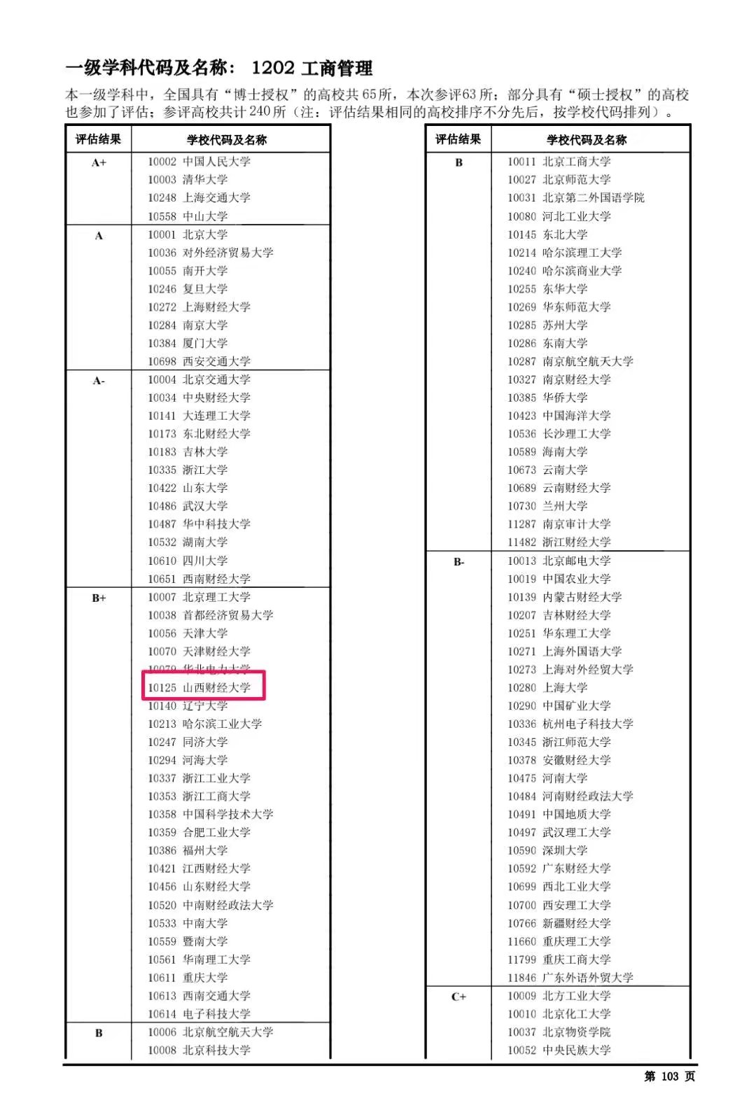 2017年12月28日,教育部公布第四轮学科评估结果,我校的工商管理学科在本次评估中获得B+,位列全国前20%。工商管理一级学科评估结果中,中国人民大学、清华大学、上海交通大学、中山大学等四所高校获得A+,北京大学等八所高校获得A,北京交通大学等八所高校获得A-。包括我校在内的24所高校获得B+,其中,财经类院校还包括:首都经济贸易大学、天津财经大学、浙江工商大学、江西财经大学、山东财经大学、中南财经政法大学等。