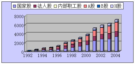 据有关资料披露,1992-2004年间,我国资本市场上国家股、法人股和流通股比例的变化较为明显,其结果如图5所示[7]。