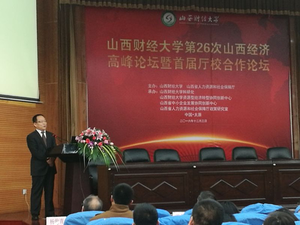 12月3日上午,由我校和山西省人力资源社会保障厅共同主办的第26次山西经济高峰论坛暨首届厅校合作论坛在坞城校区国际学术交流中心报告厅隆重举行。来自国内高等院校及研究所的专家学者、我省政府与企事业单位代表、学校各学院及研究中心的师生代表400余人齐聚一堂,共同享受了一场经济学大餐。论坛由副校长杨俊青主持。