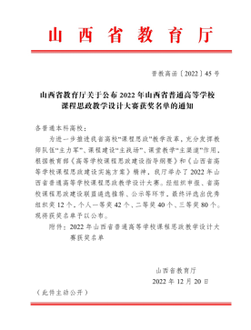 近日,2022年山西省高校课程思政教学设计大赛落下帷幕。根据《山西省教育厅关于公布2022年山西省普通高等学校课程思政教学设计大赛获奖名单的通知》(晋教高函〔2022〕45号),色情短视频