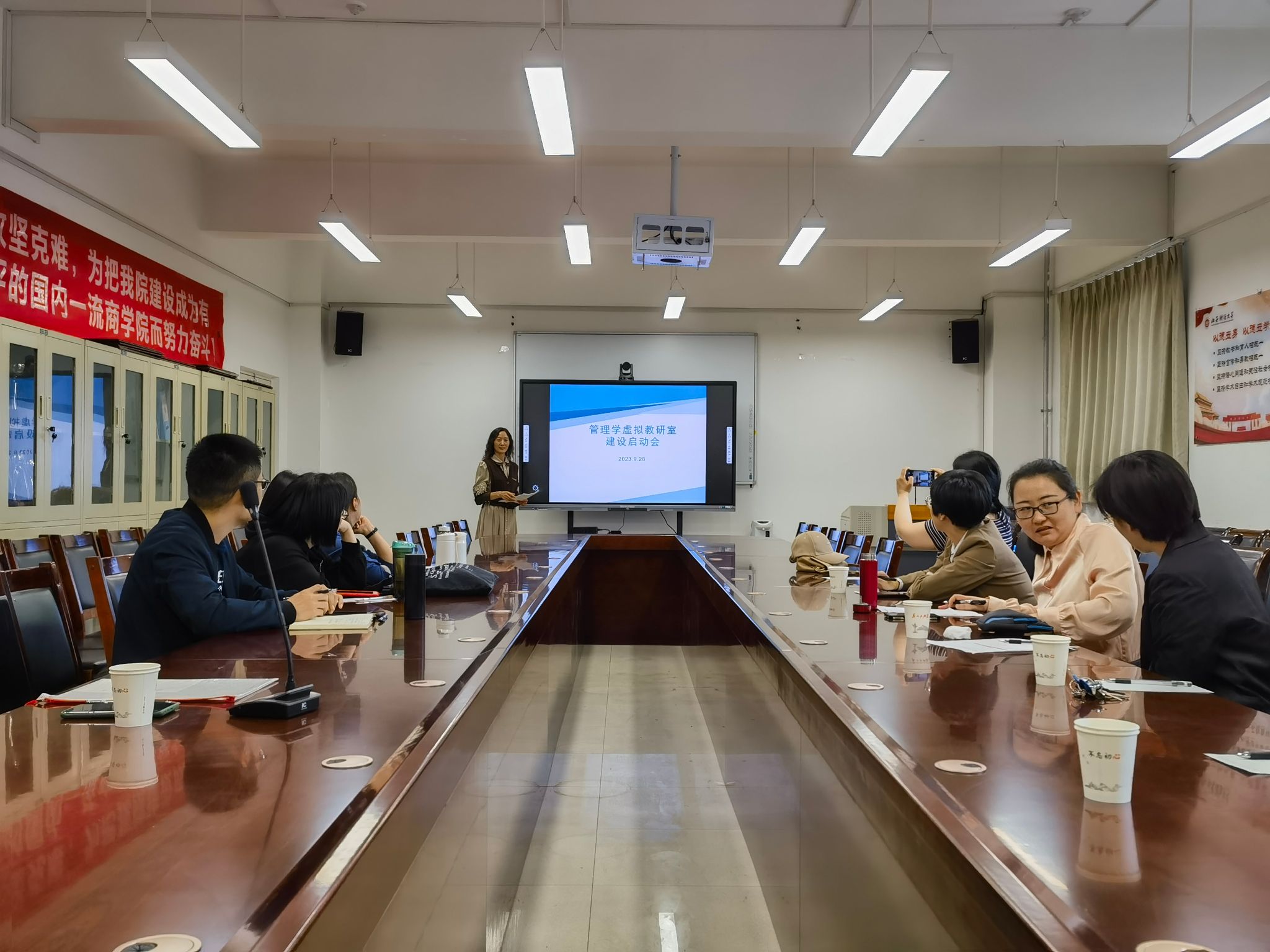 在学院会议室组织召开《管理学》课程虚拟教研室建设启动大会。《管理学》课程虚拟教研室团队核心成员参加会议。会议由虚拟教研室负责人、学院院长卫虎林主持。