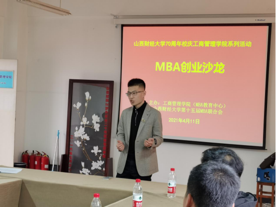 第十四届MBA联合会主席、2019级MBA校友、山西易飞创新科技有限公司创始人李明祚讲述了做教育培训、创业基地、无人机、境外医疗预约等项目的创业故事,并从“心态、能力、商业嗅觉”创业三要素向同学们分享了宝贵经验,以此赋能创新创业。