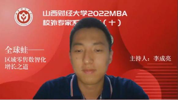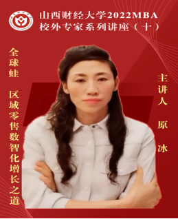 2022MBA校外专家系列讲座第十期在“腾讯会议”平台圆满举办。山西全球蛙电子商务有限公司董事长原冰女士带来了题为《全球蛙——区域零售数智化增长之道》的专题讲座,2020级、2021级MBA学员、2022级拟入学MBA学员、部分MBA教师、MBA校友等共350余人参加,本期讲座还得到MBAChina网站的同步转播。