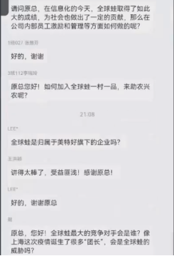 在打造服务价值链的同时,全球蛙还创造了大量的就业、兼职机会,顾客通过美特好小程序就可以申请成为全球蛙的外部团长,还可以参加职业技能培训提升导购效率。她骄傲地展示了全球蛙与太原大学、太原市妇联、快手等共同举办的“巾帼团长”活动,通过联合山西人社厅培育电子商务师,扶持大学生创业,有效缓解了就业压力,出色的团长可以达到日薪上千。原总表示全球蛙一直以创新发展为己任,希望通过自身不断的创新探索,带动更多的年轻人参与到产业融合中来,为家乡的发展贡献自己的力量。
