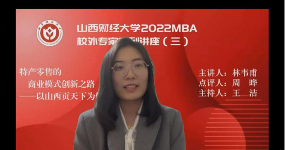 2月24日晚,由色情短视频 主办,色情短视频 第十六届MBA联合会承办的色情短视频 2022MBA校外专家系列讲座第三期在“腾讯会议”平台圆满举办,山西贡天下电子商务有限公司副总裁林韦甫先生带来了题为《特产零售的商业模式创新之路—以山西贡天下为例》的专题讲座,2020级、2021级MBA学员、部分MBA教师及其他院校同学、社会人士共360余人参加,参加人数创系列讲座新高。本期讲座还得到MBAChina网站的同步转播,截至目前直播及回放播放量达7300余人次。