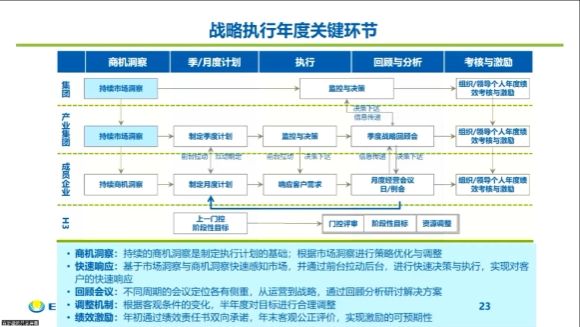 宫罗建先生首先指出,新奥集团经过三十多年的发展,已经成长为一个拥有4家上市公司、年营收超过1600亿、入围中国企业500强的能源产业集团。伴随集团的发展,其所采用的战略绩效管理理论也在逐步进化,从初期的目标管理、KPI、PDCA等绩效管理方法的引入,到“三一商业计划书”、平衡计分卡的编制应用,再到市场战略、客创一体化战略的中国化探索实践,形成了一套从战略制定到战略执行、从组织绩效到个人能力提升与激励的先进管理体系,护航了集团近20年的高速发展。