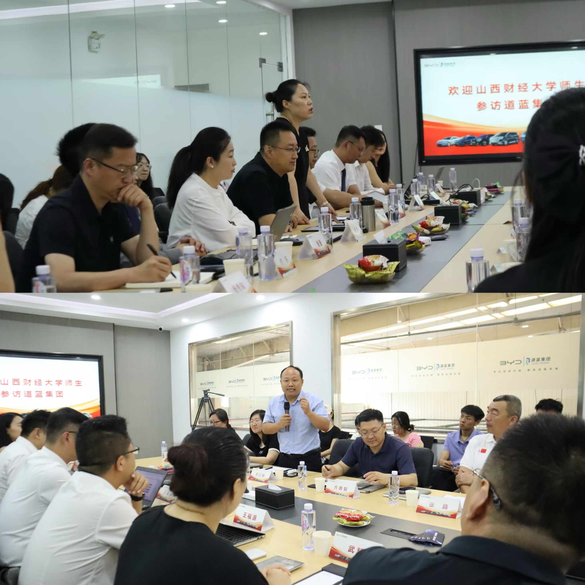 书记李群生主持。闫宏伟代表企业首先致欢迎词,并详细介绍了道蓝集团作为比亚迪核心经销商的整体布局、业务体系及发展战略,并表达了深化校企合作、共育高质量人才的强烈愿望。