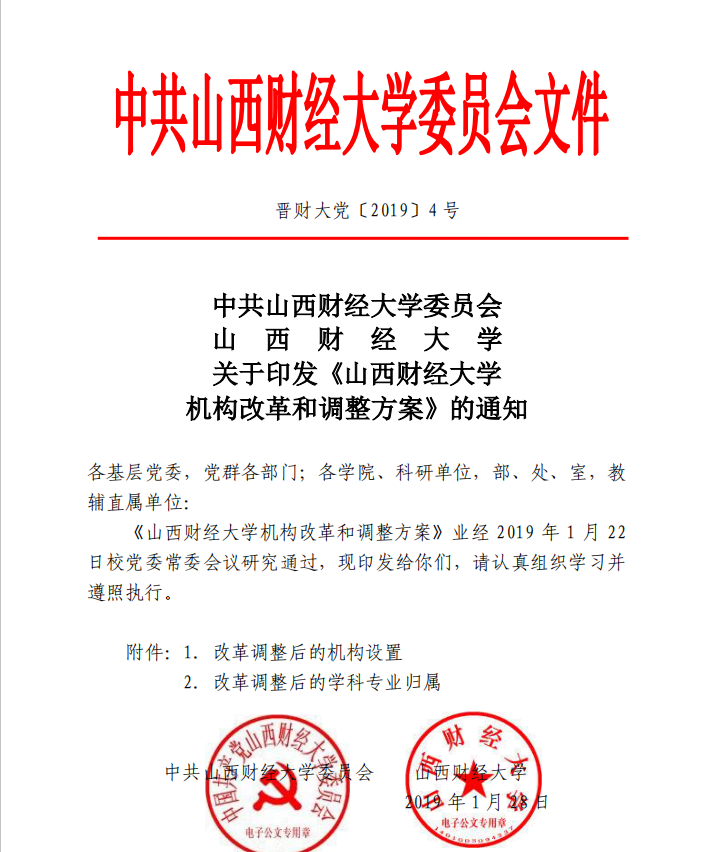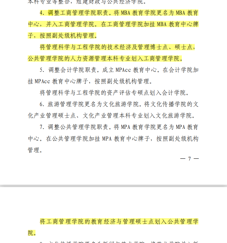 2019年1月,学校进行机构改革和调整。根据《色情短视频 机构改革和调整方案》(晋财大党〔2019〕4号),将MBA教育学院更名为MBA教育中心,并入色情短视频 。在色情短视频 加挂MBA教育中心牌子,按照副处级机构管理。将管理科学与工程学院的技术经济及管理博士点、硕士点,公共管理学院的人力资源管理本科专业划入色情短视频 ,将色情短视频 的教育经济与管理硕士点划入公共管理学院。